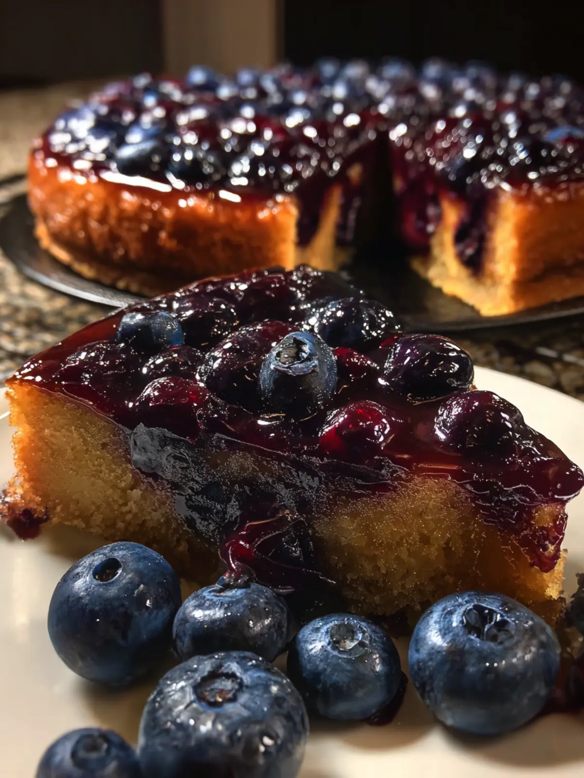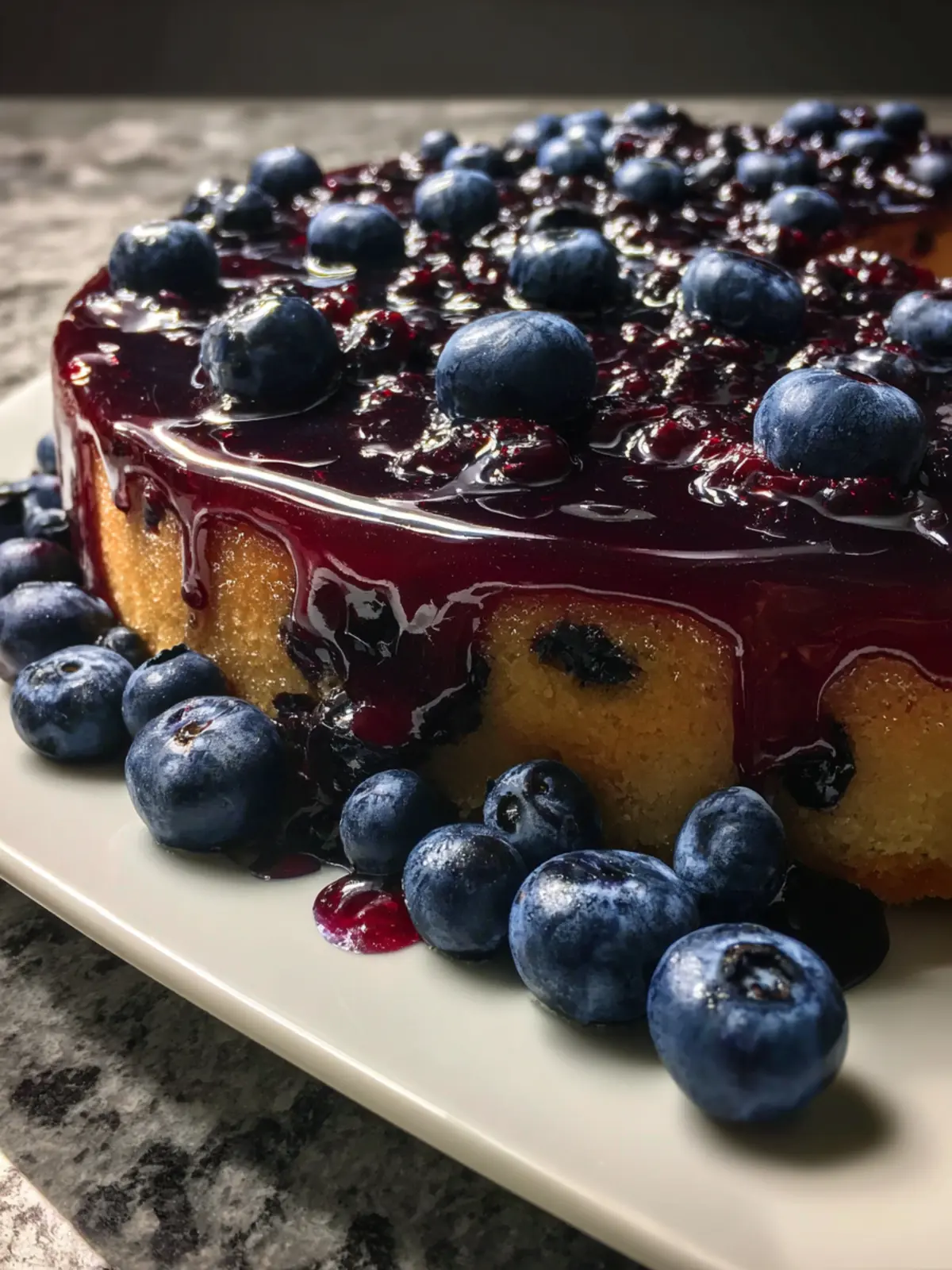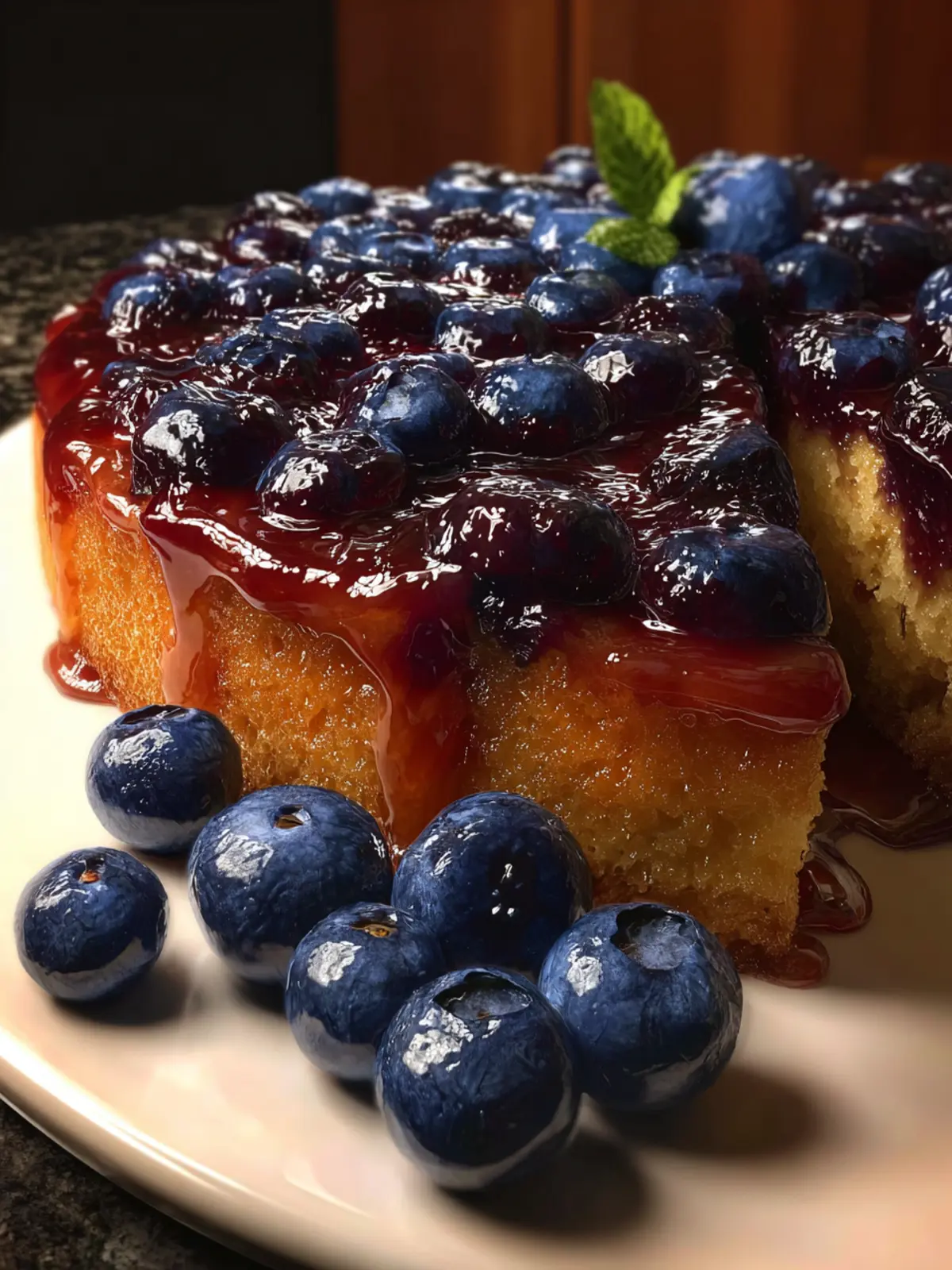 - Allow the cake to cool slightly before slicing. Serve warm or at room temperature, garnished with additional blueberries if desired.