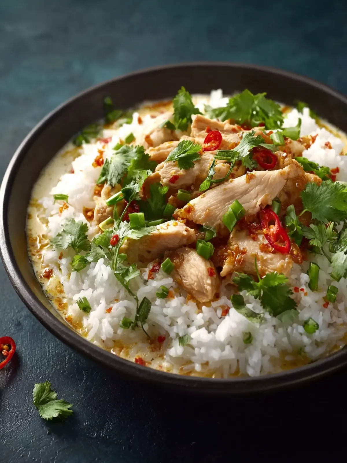 A comforting and aromatic Coconut Chicken Brothy Rice dish, perfect for any occasion.