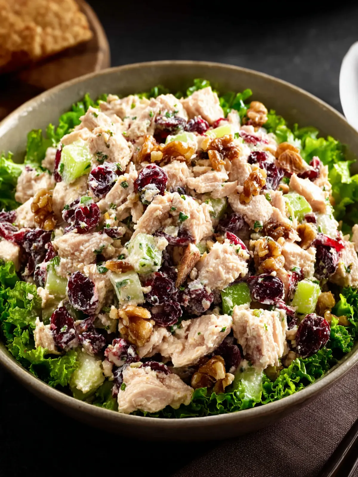 • Health Benefits: Packed with protein from the chicken and healthy fats from the walnuts, this salad doesn’t just taste good; it’s good for you, too! Cranberries are known for their antioxidant properties, helping to boost your immune system.