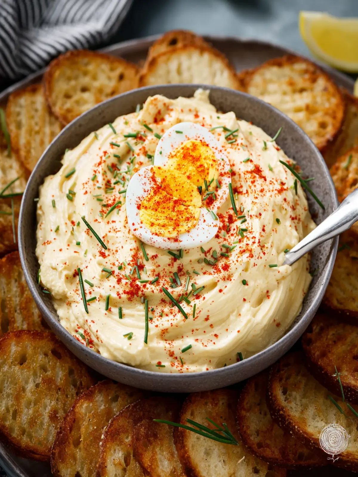 Deviled Egg Dip on Toast: Spread the deviled egg dip on slices of toasted baguette or whole-grain bread for a delightful appetizer. It’s an elegant touch that impresses guests.
