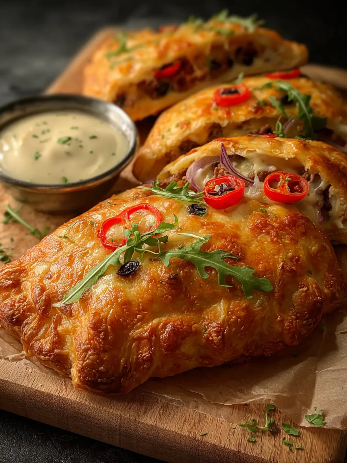 Consider pairing your calzone with a variety of dipping sauces. A classic marinara sauce is always a crowd-pleaser, providing a tangy contrast to the rich beef filling. For something more adventurous, a garlic aioli adds a creamy touch that perfectly balances flavors.